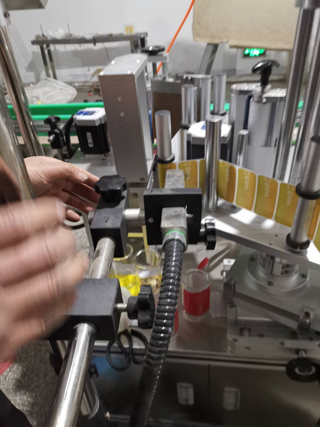 青岛一家海产品公司,由于产品规模的扩大,瓶子装的产品逐渐增加,每天的产量有15000瓶,现在是人工贴标签,需要3个人贴标签,非常的浪费人工,而且效率非常低,为了解决这个问题,他们考虑上一台自动贴标机,不仅提高了工作效率还减少了人工,并降低了工人的劳动强度。在经过对瓶型、商标、速度的要求比对完以后,我们给客户定了一款定位贴标机,速度是2000瓶/小时,而且是配喷码机的。这样就可以满足客户的需求了。因为这款机器有库存,所以我们第二天就给客户进行安装调试了,经过一天的现场生产测试,非常好用。客户很满意。